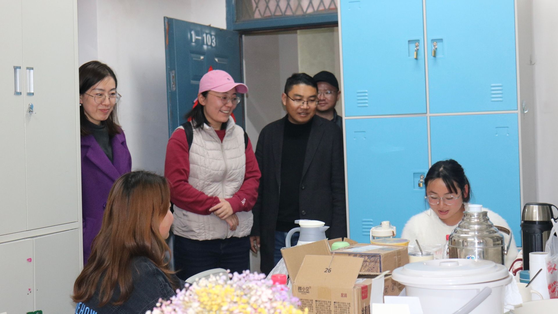 会议结束后全体人员集体走访学生宿舍,了解学生动态和排查安全隐患。