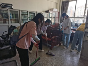 党课结束后,结合爱国卫生“7个专项行动”,组织开展了“美丽校园 你我守护”主题党日活动。全体成员分成两个小组,其中一组负责经管院办公区的清扫清洁,主要负责地面、办公桌面、卫生死角等清扫清洁,废弃垃圾的清除;另外一组来到三教周边和秋海周边,负责这片区域垃圾的清扫。参加活动的党员、入党积极分子充分发挥先锋模范作用,积极参与行动,大家分工协作,充分展现了不怕脏、不怕累的志愿服务精神和昂扬向上的精神风貌。